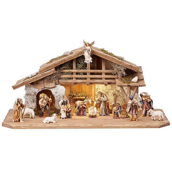 Kostner Krippenset 17 teilig im Alpenstall