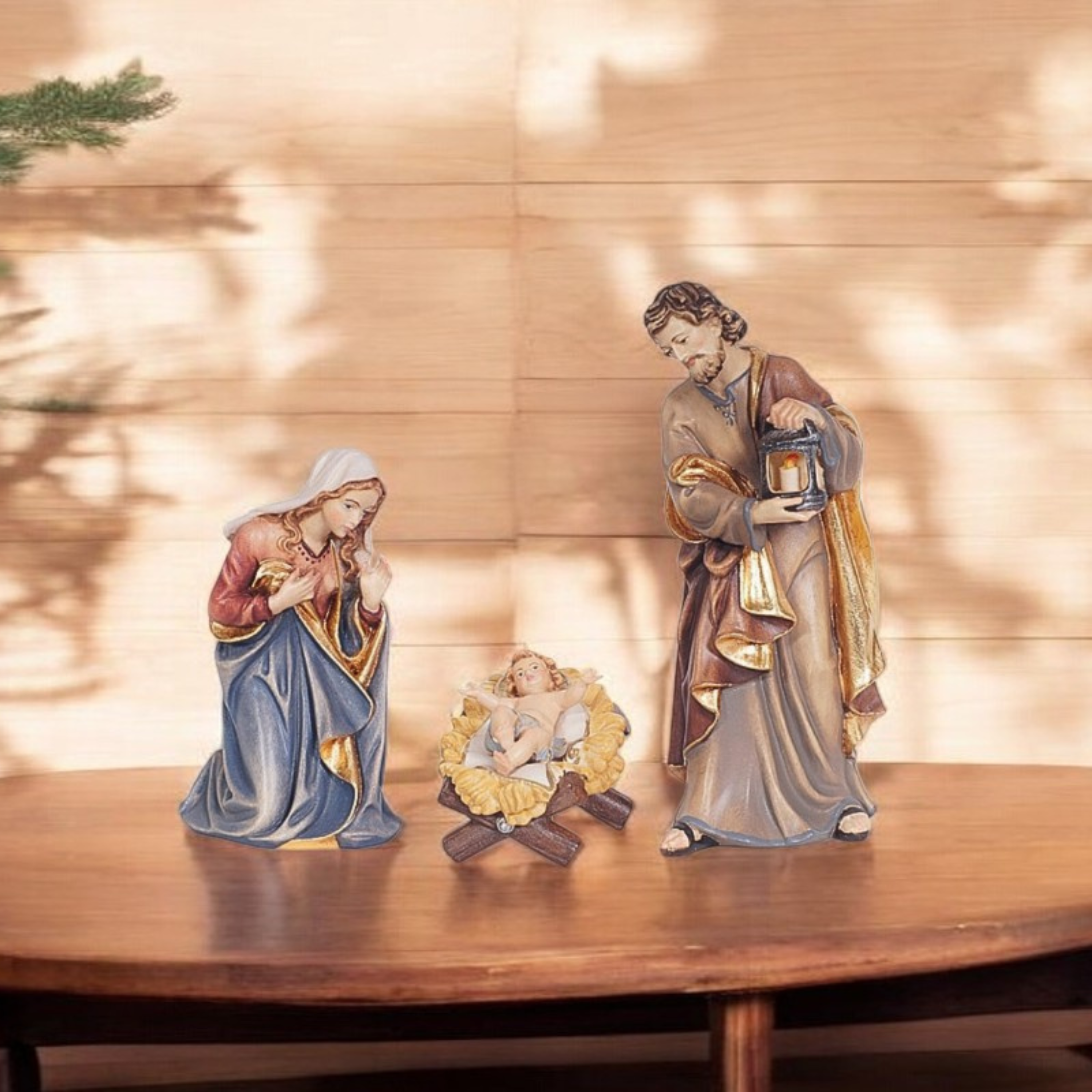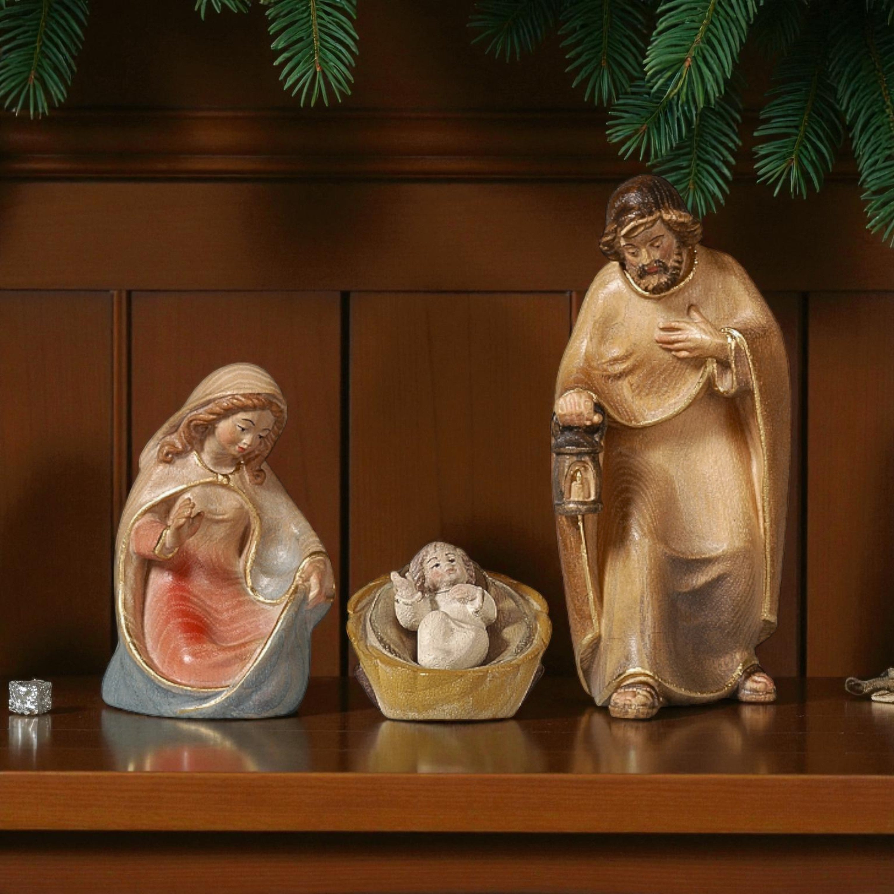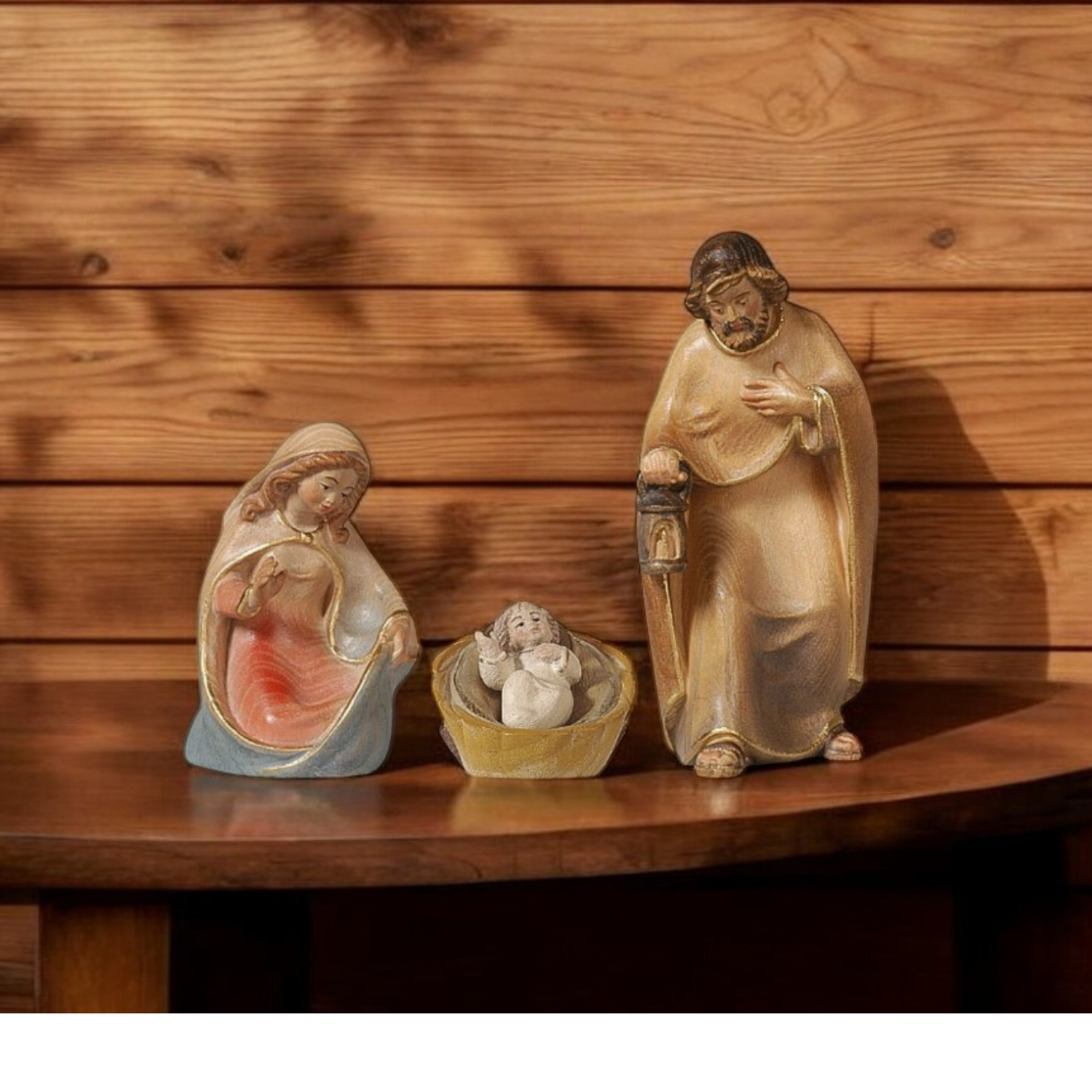 Sammelkrippen, wo man meistens mit der Heiligen Familie zum Sammeln beginnt und die Krippe dann jedes Jahr um die ein oder andere Krippenfigur erweitert. Sie können die Grödner Krippenfiguren aber auch im Set kaufen.