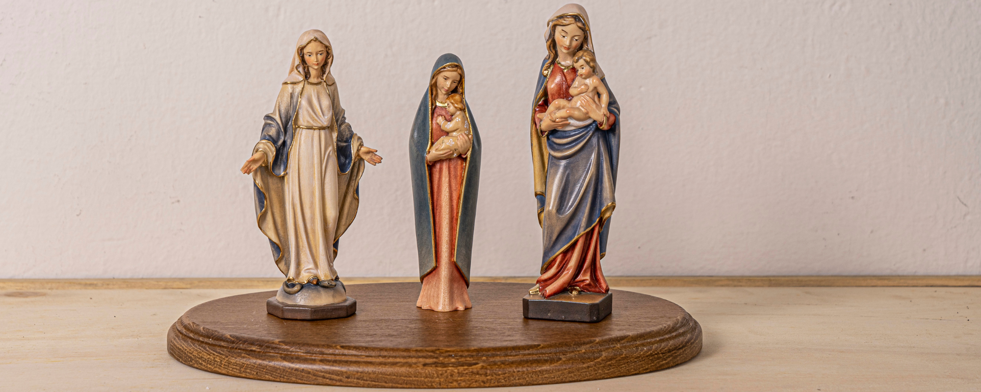 Von der Maria aus Lourdes bis zur Medjugorje Madonna: Holzgeschnitzte Marienfiguren aus Gröden.