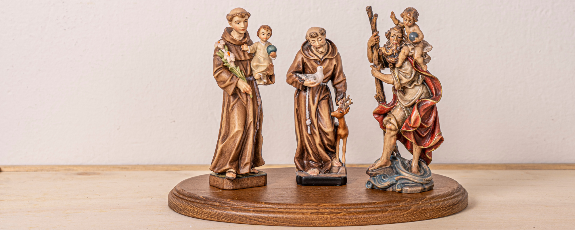 Vom Heiligen Florian bis zum Heiligen Erzengel Michael: Entdecken Sie holzgeschnitzte Heiligenfiguren & Namenspatrone aus Gröden!