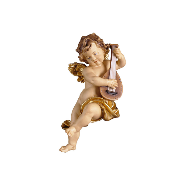 Die Grödner Holzschnitzerei Engelputte mit Laute wird nach dem Entwurf eines Bildhauers mit viel Liebe und hohem holzschnitzer handwerklichem Anteil gefertigt, wodurch jede holzgeschnitzte Figur ein geschnitztes Unikat ist. Durch die Handbemalung der geschnitzten Holzfigur können geringfügige Abweichungen zur Abbildung vorliegen.