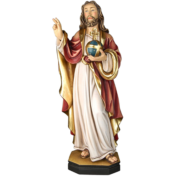 Die Grödner Holzschnitzerei Heiland Jesus Christus wird nach dem Entwurf eines Bildhauers mit viel Liebe und hohem holzschnitzer handwerklichem Anteil gefertigt, wodurch jede holzgeschnitzte Figur ein geschnitztes Unikat ist. Durch die Handbemalung der geschnitzten Holzfigur können geringfügige Abweichungen zur Abbildung vorliegen.
