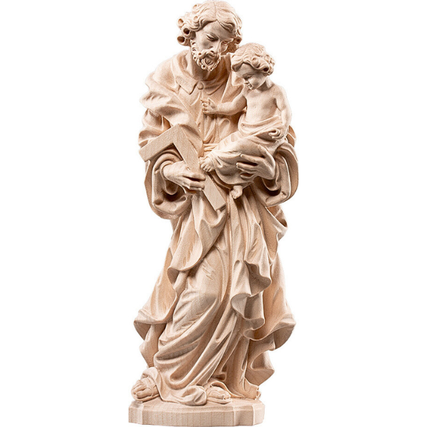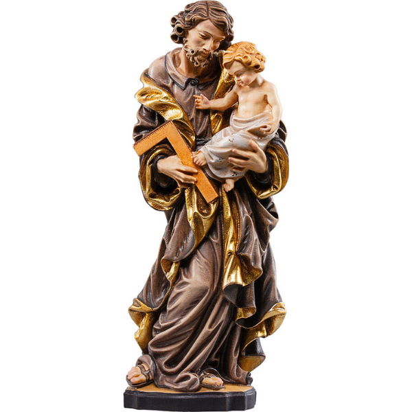 Die Grödner Holzschnitzerei Heiliger Josef mit Kind wird nach dem Entwurf eines Bildhauers mit viel Liebe und hohem holzschnitzer handwerklichem Anteil gefertigt, wodurch jede holzgeschnitzte Figur ein geschnitztes Unikat ist. Durch die Handbemalung der geschnitzten Holzfigur können geringfügige Abweichungen zur Abbildung vorliegen.