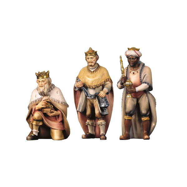 Die Grödner Holzschnitzerei Die Heiligen Drei Könige Hirtenkrippe wird nach dem Entwurf eines Bildhauers mit viel Liebe und hohem holzschnitzerei handwerklichen Anteil gefertigt, wodurch jede holzgeschnitzte Figur ein geschnitztes Unikat ist. Durch die Handbemalung der geschnitzten Holzfigur können geringfügige Abweichungen zur Abbildung vorliegen.