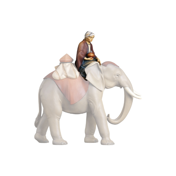 Die Grödner Holzschnitzerei Elefantenreiter Kometkrippe wird nach dem Entwurf eines Bildhauers mit viel Liebe und hohem holzschnitzerei handwerklichen Anteil gefertigt, wodurch jede holzgeschnitzte Figur ein geschnitztes Unikat ist. Durch die Handbemalung der geschnitzten Holzfigur können geringfügige Abweichungen zur Abbildung vorliegen.