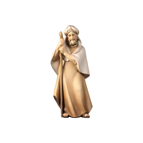 Die Grödner Holzschnitzerei Hirt mit Stock Kometkrippe wird nach dem Entwurf eines Bildhauers mit viel Liebe und hohem holzschnitzerei handwerklichen Anteil gefertigt, wodurch jede holzgeschnitzte Figur ein geschnitztes Unikat ist. Durch die Handbemalung der geschnitzten Holzfigur können geringfügige Abweichungen zur Abbildung vorliegen.