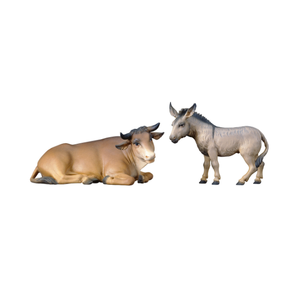 Die Grödner Holzschnitzerei Ochs und Esel Hirtenkrippe wird nach dem Entwurf eines Bildhauers mit viel Liebe und hohem holzschnitzerei handwerklichen Anteil gefertigt, wodurch jede holzgeschnitzte Figur ein geschnitztes Unikat ist. Durch die Handbemalung der geschnitzten Holzfigur können geringfügige Abweichungen zur Abbildung vorliegen.