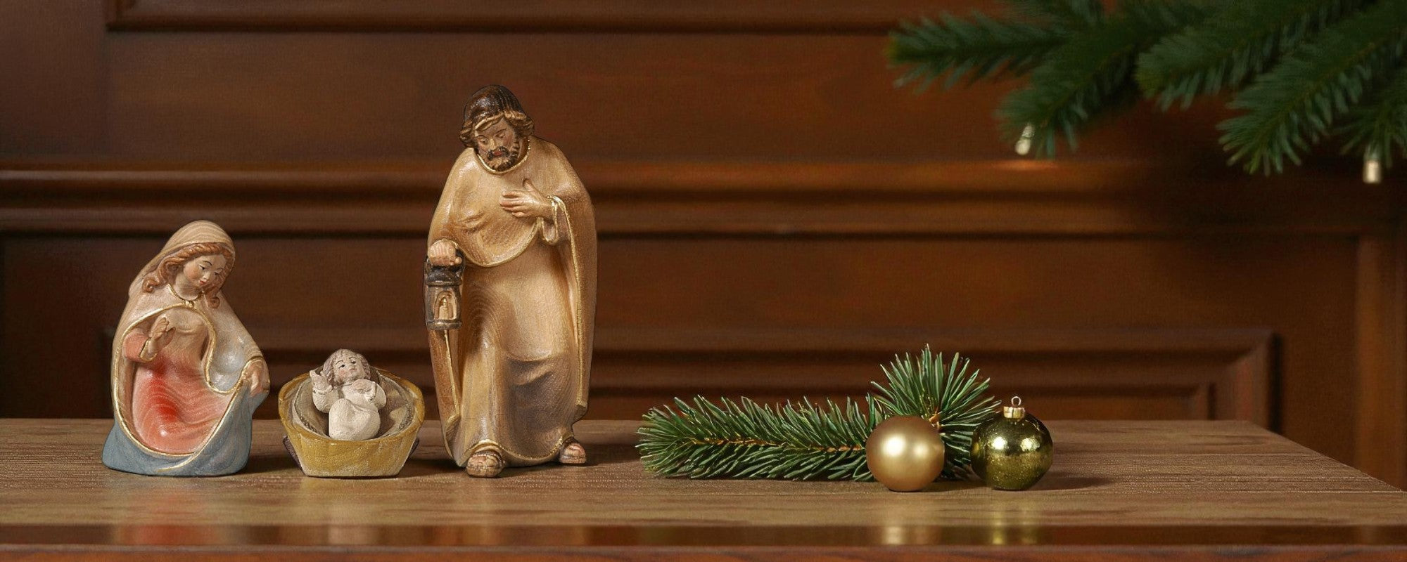 Sammelkrippen, wo man meistens mit der Heiligen Familie zum Sammeln beginnt und die Krippe dann jedes Jahr um die ein oder andere Krippenfigur erweitert. Sie können die Grödner Krippenfiguren aber auch im Set kaufen.
